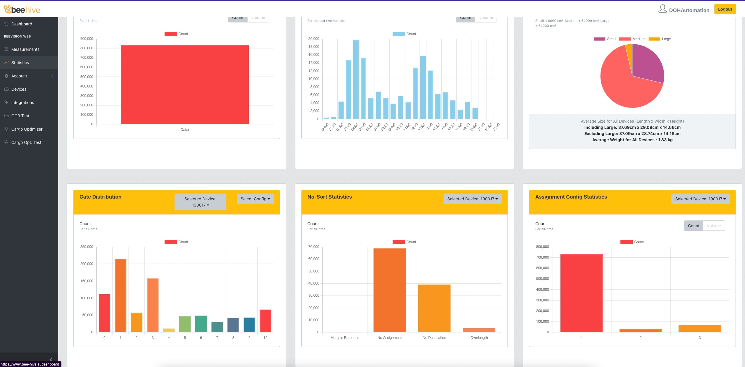 Depo otomasyonunuzu iyileştirmek için hacim ölçer ve sorter verilerinizi toplar ve analiz eder.